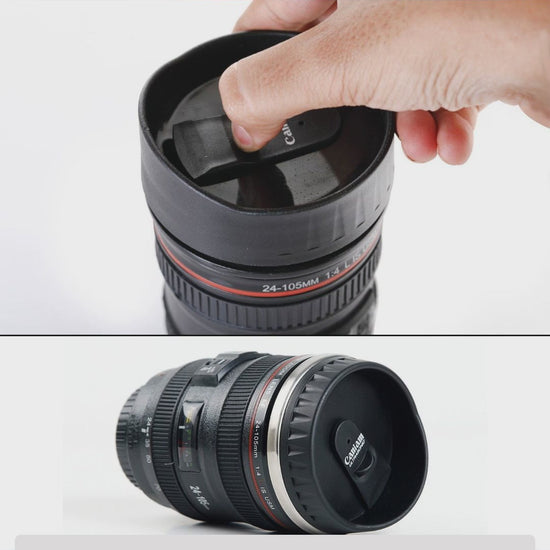 Crafted by a camera lover for fellow enthusiasts, this coffee mug perfectly mimics a Canon EF 24-105mm f/4L IS USM zoom lens. It’s so realistic, it even has fixed buttons—a rare and fun detail! Lightweight and portable, it's your perfect companion for shoot days or anywhere you go. This mug sparks conversations and breaks the ice, making it great for networking. An ideal gift for photographers or videographers, it’s built tough with stainless steel inside and food-grade ABS and rubber outside. The spill-proof sealed cap and anti-slip grip keep your drink safe and your hands cool while your coffee stays warm. Enjoy sipping with a lens flair!